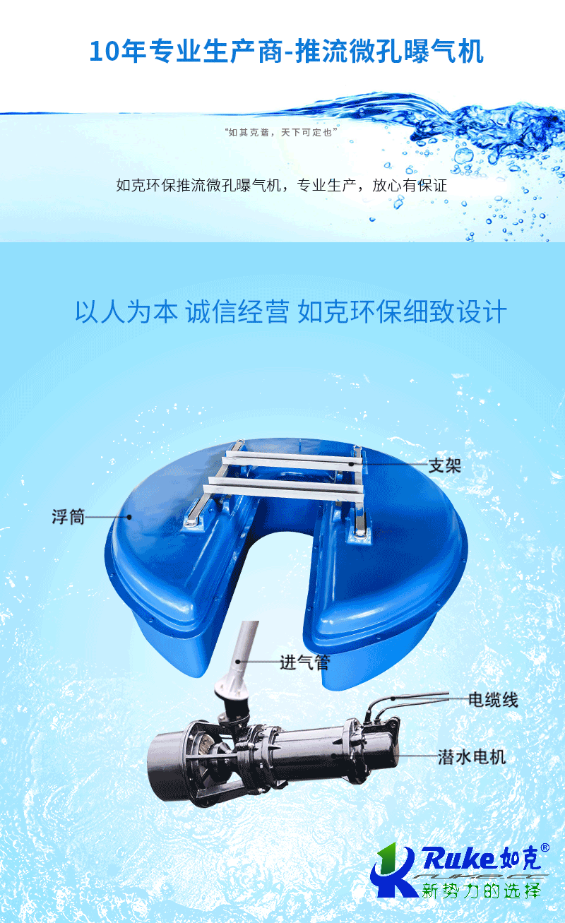 江蘇如克(www.gnhzh.com)是一家主營推流曝氣機,潛水攪拌機,噴泉式曝氣機,干式攪拌機,吸沫機,餐廚垃圾處理設備等環保設備的廠家,我們的產品價格優惠,型號全,服務好,歡迎洽談合作!